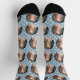 Puedes mostrar tu amor por tu amigo, esposo o pareja con estos alegres y acogedores calcetines impresos por personalizado. Este diseño presenta un patrón de tu foto favorita junto con pequeños puntos de polka blancos sobre el fondo Dusty Blue. Puede crear la propia imagen agregando la imagen a la imagen de marcador de posición redondeado. Será una idea de regalo personalizada y un obsequio de medias.