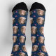 Puedes mostrar tu amor por tu amigo, esposo o pareja con estos alegres y acogedores calcetines impresos por personalizado. Este diseño presenta un patrón de tu propia foto favorita junto con pequeños corazones de confeti rosados sobre fondo azul marino. Puede crear la propia imagen agregando la imagen a la imagen de marcador de posición redondeado. Será una idea de regalo personalizada y un obsequio de medias.