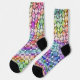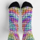 Un diseño contemporáneo de tejas abstractas y colores arcoiris para calcetines divertidos y entretenidos.