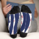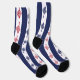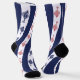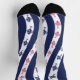 Los peces azules y rojos nadan entre las olas de rayas azules y blancas.