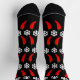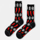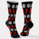 Calcetines novedosos de Navidad con filas de pimientos rojos picantes y copos de nieve blancos.