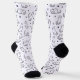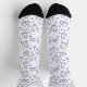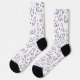 These charming crew socks feature an all-over minimalist pattern of hand-drawn feline friends. With a crisp white background and contrasting black heel and toe, they offer a clean, modern look for any cat enthusiast. The whimsical line-art style showcases cats in various playful poses, accented by tiny paw prints and hearts for an extra touch of personality.
