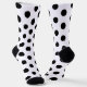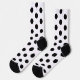 These white socks with black dots are perfect finish to your black and white derby outfit. Based on the traditional spots racing silks pattern, they are elegant and fun. Also known as polka dots, this pattern is a classic print you will see on horse racing jockey silks. Dress in style for derby day at the horse race track or for a swanky black and white derby event.