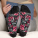 Calcetines Raspberry, flores borgoñas en gris oscuro