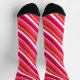 Calcetines en capas, con aspecto 3D, rayas diagonales de caramelo en múltiples tonos de rojo, rosa profundo a pálido y blanco
