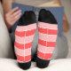 Un diseño de coral rojo hecho exactamente de estas franjas de color, combinado con una versión más ligera del rojo (= rosa pálido). Y un elefante blanco también cruza las medias.