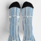 Rayas ligeramente temblorosas en azul sobre blanco. Desiguales, como si estuvieran dibujadas a mano. Adecuadas para la oficina u otras actividades comerciales serias. Al menos mientras mantengas los zapatos puestos. Debajo, al pie, todavía hay algo de espacio, donde puedes añadir tu nombre o una cita corta que ilumine tu día.