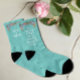 Con ilustraciones de pájaros y flores silvestres sobre un fondo turquesa, el texto dice: "¡Mis calcetines para bailar toda la noche en la recepción de mi boda!" El interior del calcetín izquierdo tiene el nombre de la novia y el novio, y el interior del calcetín derecho tiene la fecha de la boda. Un regalo divertido para la futura novia en su despedida de soltera, y también práctico, cuando se quite sus incómodos tacones para una noche especial de baile. Fácil de personalizar utilizando las plantillas de texto y el menú de edición.