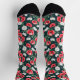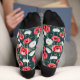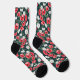 A floral design of red poppies, white and green elements. Form a botanical pattern on a dark green background.