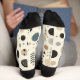 Un elegante patrón con varios círculos y motivos botánicos en una apacible paleta de beige, marrón, negro y azul. Este diseño minimalista evoca un ambiente sereno de bosques.