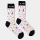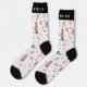 The lively pattern wraps around the sock for a colorful look that stands out while still feeling light and wearable. The black cuff, heel, and toe give the design a bold contrast, while the customizable name on the cuff adds a personalized touch that makes the socks feel extra special.