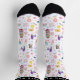 These playful custom crew socks feature a fun scatter pattern of retro-inspired party icons in bright, cheerful colors. Roller skates, cassette tapes, donuts, flamingos, unicorns, phones, stars, bows, and sweet treats create a nostalgic sticker-style design that feels like the ultimate throwback celebration.