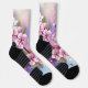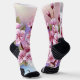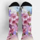 Dibujado artísticamente, rama de rosa, flores de cerezo sobre fondo pintoresco, texturizado, pintado con pintura blanca, rosa y azul. Pink Sakura