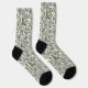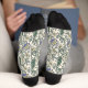 Seamless repeating pattern featuring stylized blue, yellow, and white floral motifs with green vines and leaves on a cream background.