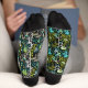 Estos calcetines de hongos tienen un patrón de seta retro teal en varias setas diferentes para un patrón de bosque de hongos completo. Puedes hacer que el patrón de setas sea más pequeño o más grande en los calcetines.