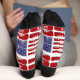 An artwork for winter. window, snowflakes, and skis are forming the flag of the United States. The triangles on boards represent the snow mountains and icicles.