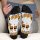 Este par de calcetines de diseño de caballos son una tela suave que cubre los pies, normalmente usados en zapatos interiores para proporcionar confort, calidez y absorbencia. Puede personalizar este par de medias con cualquier texto que elija. Si necesita ayuda para personalizar, póngase en contacto con nosotros a través del enlace de mensajes de esta página. Par de calcetines de diseño de caballos.