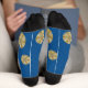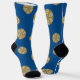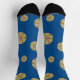 Una mandala de círculo concéntrico de color azul oscuro con puntos azules brillantes y con estrellas doradas esparcidos entre las capas y un brillante círculo de gradiente de ráfagas de sol detrás hace que el diseño sea divertido y que tenga en mente un cielo estrellado nocturno y un día soleado brillante con una imagen.