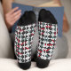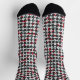 Estos calcetines tienen un patrón retro de tablero de ajedrez con piezas de ajedrez y un tablero de ajedrez con símbolos atómicos. Un gran patrón de ajedrez perfecto para cualquier amante moderno o amante del ajedrez de mediados de siglo. Se puede hacer el patrón de ajedrez más grande o más pequeño en estos calcetines.