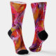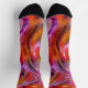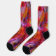 Los vibrantes remolinos de naranja, morado y rosa se mezclan con salpicaduras de amarillo y blanco. Las pinceles dinámicas crean un sentido de movimiento y energía a lo largo de la composición