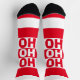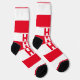 Estos calcetines presentan rojas y blancas alternando los "HO HO HO HO" con rayas rojas y blancas. ¡Una combinación clásica de Navidades!