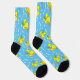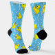 Un revoltijo de notas de música blanca y una linda chica amarilla sosteniendo un trombón en un fondo azul es un diseño musical único para músicos de bajos bronce, profesores de música y estudiantes de escuela en concierto, jazz y banda de marcha.