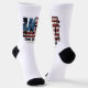 Fun God Bless America USA socks. Partiotic red, white and blue flag design. Keep your feet warm with these cozy socks year round. Thoughtful gift for those in the military.