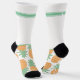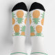 ¡Serie Secretamente Salvaje! Estos calcetines tienen doble función: arriba, están todos tranquilos y son correctos - perfectos para el mundo ordenado y uniforme de la vida de oficina. ¿Pero escondido dentro de tus zapatos? Ahí es donde brillan tus verdaderos colores. Brillante, audaz, indomable y un poco rebelde. Cuando la jornada laboral termina y los zapatos se bajan, el verdadero sale. Desata tu lado salvaje - un calcetín a la vez. Rayas verdes clásicas sobre un fondo blanco en la parte superior. En cambio, en el lado del pie hay piñas menos serias en verde y naranja. ¡Fruto y salvaje!