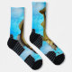 Cada calcetín tiene un lucio de púas sobre un fondo de agua azul.