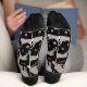 Los perros de Weimaraner se sientan, se paran y vuelan con huesos de perro dispersos y huellas en un fondo negro.