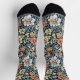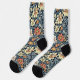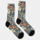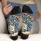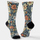 Seamless William Morris-style textile pattern featuring orange, cream, and yellow flowers with blue-gray acanthus leaves against a dark navy background.