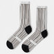 Slightly wobbly stripes in brown on white. Uneven, as if hand-drawn. Suitable for the office or other serious business activities. At least as long as you keep your shoes on. Underneath, at the foot, there's still some space, where you can add your name or a short quote that brightens your day.