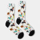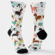 Perros adorables fiestas de cumpleaños dachshund con abrigos negros, tostados y de manzana vestidos con adorables trajes de cumpleaños con globos, tortas y patrones de confeti.
