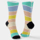 Calcetines a rayas rosa, ocre y turquesa retro con una "costura" blanca en la parte posterior.