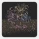 pegatina cuadrada que pega contigo especial para ocasiones y celebraciones hechas con textura negra y flores de colores variados con purina multicolor puedes usarla para un especial envío.