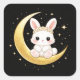 Esta linda pegatina cuadrada de conejo de Pascua celestial presenta un adorable conejo kawaii sentado en una luna dorada brillante rodeado de estrellas brillantes. Diseñada con una estética soñadora, esta pegatina combina una suave ilustración de conejo con elementos celestes, lo que la hace perfecta para regalos de Pascua, decoración de primavera y uso diario.