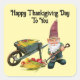 Calcomanía cuadrada de Gnome de Acción de Gracias