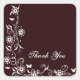 Expresa tu agradecimiento con este diseño de calcomanía sofisticado que presenta una vid floral blanca sobre un fondo borgoña. El texto personalizable te permite cambiar las fuentes, los colores y tamaños del texto como desees. También está disponible papelería a juego con este diseño.