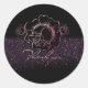 Pegatina en forma redonda que pegan especial para ocasiones y celebraciones hechas con textura negra y rosas con purina de color rosa puedes usarla para un envío especial.