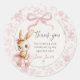 Agrega un dulce toque final a los favores de tu fiesta con esta adorable pegatina de agradecimiento de cumpleaños de conejita bebé niña. Diseñada con suaves patrones florales rosados, una ilustración de conejito adorable y un detalle de lazo elegante, esta pegatina es perfecta para celebraciones de primer cumpleaños, favores de fiesta de bebé niña, bolsas de dulces, cajas de regalos y sobres de agradecimiento. Personalízala con el nombre de tu hijo para crear un recuerdo encantador que tus invitados amarán. Ideal para padres que buscan pegatinas de agradecimiento de cumpleaños lindas, elegantes y memorables que se destacan en Zazzle.