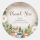 Calcomanía de agradecimiento para baby shower Bosque de invierno con animales y árboles de pino florales blancos