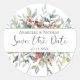 Este diseño presenta una ilustración de follaje verde y bayas rojas en estilo acuarela. Personaliza con tus nombres y fecha de boda. El texto "Guardar la fecha" está escrito en una tipografía de escritura.