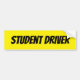 Una simple calcomanía amarilla con las palabras "Conductor Estudiante" escritas en letras negras . Es una calcomanía muy útil para instructores de autoescuela, ya que les ayuda a advertir a los vehículos detrás de ellos de que la persona que conduce el coche puede no ser muy experimentada . Puede reemplazar el texto con el suyo propio y cambiar la fuente si lo desea .