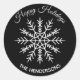 Esta calcomanía en blanco y negro está acentuada con Felices Fiestas escrito en una fuente divertida, su nombre y un copo de nieve blanco brillante, lo que la hace perfecta como sello de sobre o etiqueta de regalo durante la temporada de fiestas.