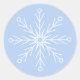 Una calcomanía o sello de sobre redondo azul con un copo de nieve de arte de línea.