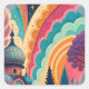 Empapado en tonos vibrantes de arcoíris y arquitectura mística, esta pegatina cuadrada personalizada eleva al instante tu marca, celebración o proyecto de manualidades. La ilustración muestra una cúpula de fantasía que recuerda a estructuras de Oriente Medio y eslavas, envuelta en olas psicodélicas que giran en tonos turquesa, coral, magenta y amarillo dorado. Diseñada para cautivar, esta composición vívida es ideal para cualquiera que busque destacarse, ya sea que esté promocionando un producto, sellando invitaciones de boda o personalizando bolsas de regalo para cumpleaños, eventos religiosos o ceremonias escolares.