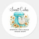 Una etiqueta de panadería de acuarela personalizable que presenta una encantadora batidora retro rodeada de hermosas flores de girasol y detalles botánicos suaves. Este diseño cálido de estilo vintage es perfecto para agregar el nombre de su panadería, el nombre del producto o texto personalizado.