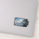 Una calcomanía con forma de batería con una hermosa vista de la parte superior de una cascada con el recordatorio de recargar tu propia batería.