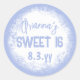 ¡Personaliza tu propia calcomanía de fiesta azul claro para tu fiesta de cumpleaños Sweet 16! El desvanecimiento blanco es atractivo con tus fuentes azules. ¡Utiliza esta etiqueta de cumpleaños azul y blanca personalizada para sobres o bolsas de regalo de sweet sixteen! Perfecto para temas de color azul claro, azul cielo, azul bebé.