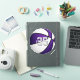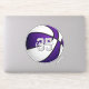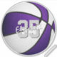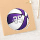 Este personalizado pegatina de baloncesto presenta la imagen realista de un baloncesto que tiene paneles de color morado y blanco alternados en los que se puede personalizar el nombre y número de camiseta del atleta - de katz_d_zynes
